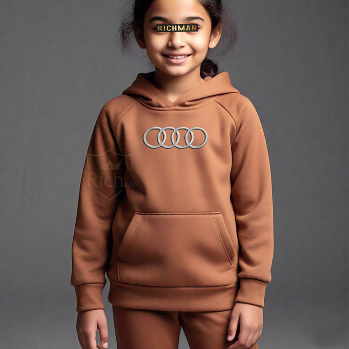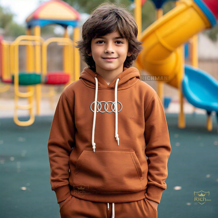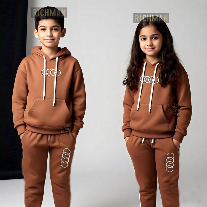 Kids’ Unisex Hooded Tracksuit – Brown Color, All-Season Wear
